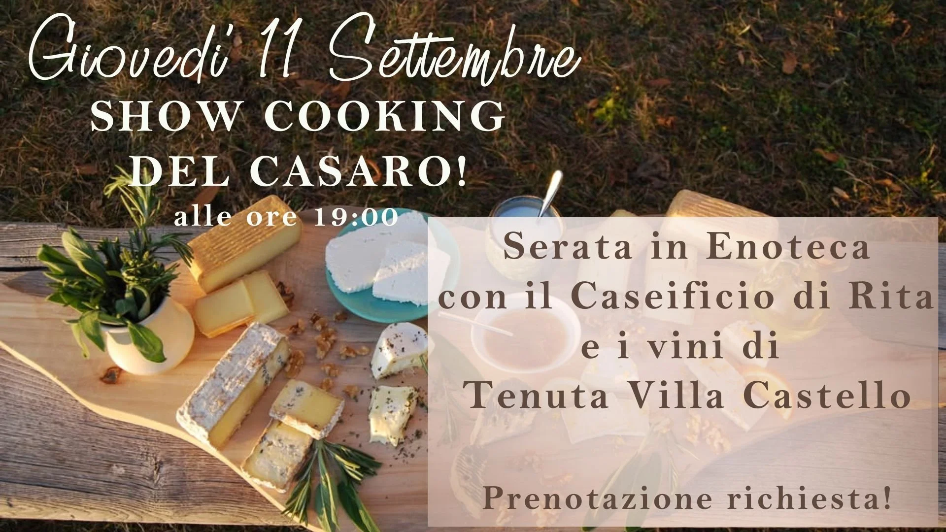 A special evening dedicated to the cheeses of Rita's Cheese Factory and the wines of Tenuta Villa Castello, two realities of excellence in Mendrisiotto.
